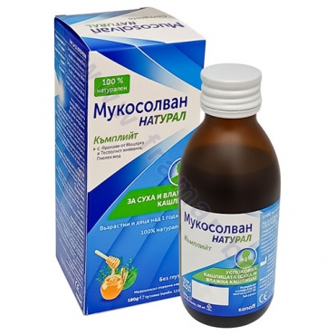MUCOSOLVAN NATURAL Complete е медицинско изделие предназначено за кашлица (суха и влажна кашлица) и по-специално за кашлица, свързана с инфекции на горните дихателни пътища.