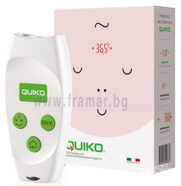 Термометър Quiko - бърз и безконтактен инфрачервен термометър с прецизен алгоритъм и иновативна система за прожектиране на резултата, за точни измервания всеки път! При правилна употреба Quiko, ще осигури дълги години точни измервания.