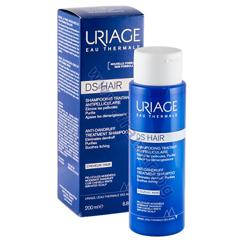 DS HАІR Иновация: Първата гама шампоани против пърхот с Термална вода от Френските Алпи. Брилянтна комбинация от пироктон оламин и цинков лактат, която контролира развитието на бактерията Malassezia, провокираща появата на пърхот. Уникалната формула включва ексклузивен патентован комплекс TLR2-Regul, Термална вода Uriage и екстракт от еделвайс, за да успокои и защити скалпа.