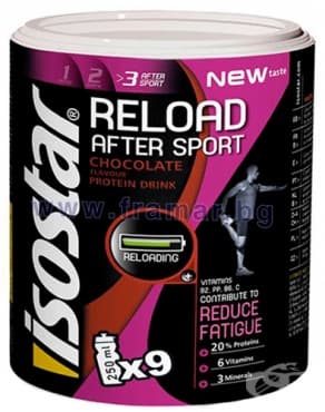 ISOSTAR AFTER SPORT RELOAD е хранителна добавка, снабдяваща организма с прилив на енергия и сила за по-добри спортни постижения. Богата е на протеини, усвояващи се мигновено от тялото. Така то се зарежда с енергия и сила за по-дълго и интензивно физическо натоварване.
