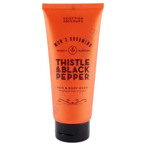 Нежен и ароматен продукт за коса и тяло - Шампоан и душ гел. Обогатен с екстракт от Бял трън и Пантенол. Почиства едновременно косата и кожата на тялото, като ги оставя хидратирани, подхранени и приятно ароматизирани с мъжествения аромат на серията „Трън и Пипер“