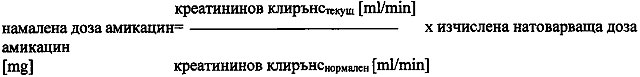 При пациенти с хронична бъбречна недостатъчност и известен креатининов клирънс, натоварващата доза е амикацин 7,5 mg/kg телесно тегло. Поддържащата доза, давана през интервали от 12 часа, трябва да се намали пропорционално на намаляването на креатининовия клирънс на пациента и се изчислява по формулата: