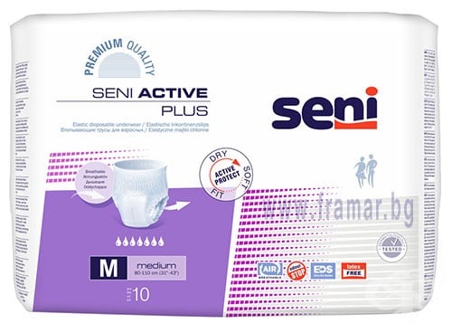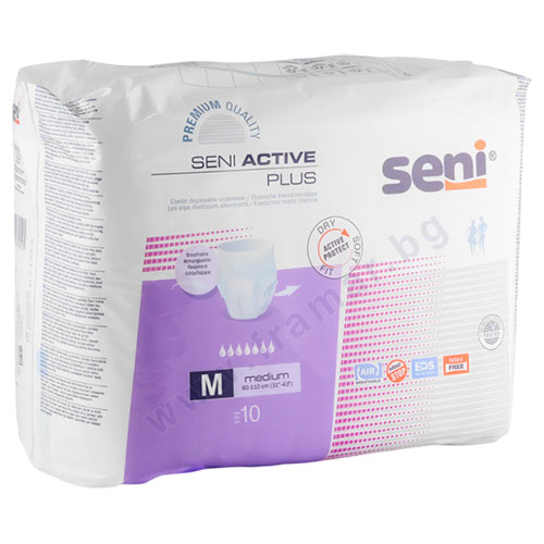 Дишащи еластични пелени-гащи Seni Active Plus за тежка инконтиненция. Seni Active се поставя и носи като нормално бельо, което го прави идеално за хора, водещи активен начин на живот. Лесно се махат - просто разкъсвате страниците и махате пелената.
