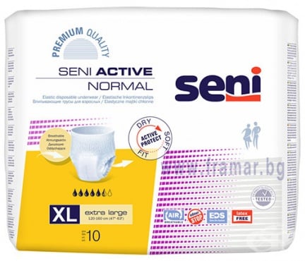 Seni Active Normal са надеждно решение за активни хора, които ценят удобството и сигурността. Предназначени са за лека и средна инконтиненция. Seni Active Normal абсорбиращи гащи могат да бъдат слагани и сваляни точно като обикновено бельо.