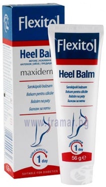 Балсамът Flexitol е медицинско изделие, което доказано овлажнява в дълбочина напуканата и суха кожа на петите и ходилата. Този високоефективен продукт съдържа 25% урея в комбинация с подхранващи съставки. Още от първото нанасяне осигурява дълготрайна и бърза хидратация. Създаден е така, че да не бъде мазен и да се абсорбира лесно от кожата. Може да се използва от хора с диабет.