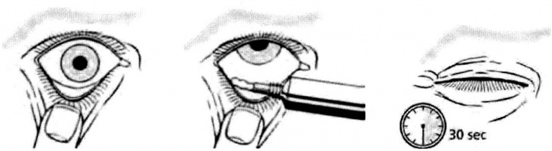4. Нанесете лентичка с дължина 1 cm от очната маз във вътрешността на долния клепач. Постарайте се връхчето на тубичката да не докосне някоя част от окото.