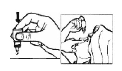 8. Натиснете леко дъното на обърнатата надолу бутилка с показалеца, така че да капне само една капка от Латасопт.