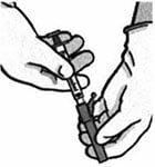 - Издърпайте предпазителя на иглата право напред, за да не увредите върха й.
