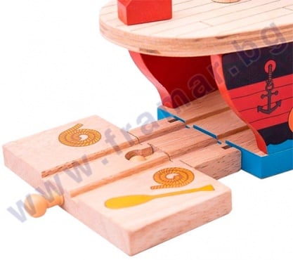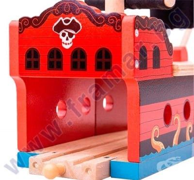 Пиратският кораб на BIGJIGS TOYS е оригинална дървена играчка, която може да бъде вълнуващо допълнение към останалия морски, железопътен или автомобилен парк на вашето дете. Има възможност да се използва с друга дървена писта или самостоятелно, в зависимост от предпочитанията и въображението на детето. Играчката е предназначена за забавление, но заедно с това развива сръчността и координацията на детето.