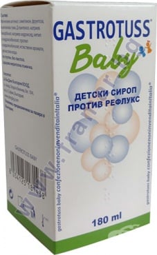 GASTROTUSS® Baby е медицинско изделие с механично действие за лечение на гастроезофагеален и/или фаринголарингеален рефлукс при новородени и деца, с цел намаляване на симптомите и признаците, свързани с него, като например: регулация на киселото или алкално стомашно съдържимо, пироза (парене в стомаха), тяло при хипофаринкса (усещане за чуждо тяло в гърлото), ринофарингеално възпаление, оригване, усещане за напрежение в корема, кашлица, дисфония (промяна на гласа) и във всички случаи на смущения, които като основа или спомагателна причина се дължат на гастроезофагеален и/или на фаринголарингеален рефлукс. GASTROTUSS® Baby подпомага процесите на реепителизация на гастроезофагеалната и фаринголарингеалната лигавица.