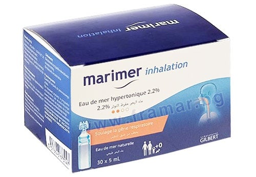 Маример за инхалация е стерилен разтвор на хипертонична морска вода. Естествената му формула се препоръчва за кърмачета, деца и възрастни за овлажняване и успокояване на дихателните пътища в случай на задръствания, обструктивен дискомфорт, хрипове или хронична кашлица. Осмотичното действие при вдишването на Маример помага за разхлабване и премахване на излишната слуз, като насърчава мобилизирането на секретите в дихателните пътища. Маример инхалационен разтвор помага за възстановяване на дишането и подобряване на качеството на живот. Маример инхалационен разтвор може да се използва при сесии за инхалация или аерозолна терапия.