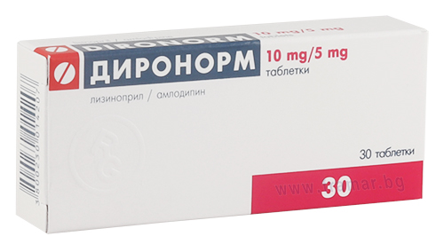 Диронорм е комбиниран продукт от амлодипин, който принадлежи към групата лекарства, наречени блокери на калциевите канали (калциеви антагонисти), и лизиноприл, който принадлежи към групата лекарства, наречени инхибитори на ангиотензин-конвертиращия ензим (АСЕ). Диронорм се използва за лечение на хипертония (високо кръвно налягане) при възрастни. Диронорм е показан за лечение при възрастни пациенти, при които кръвното налягане вече се контролира с комбинация от 10 mg лизиноприл и 5 mg амлодипин.