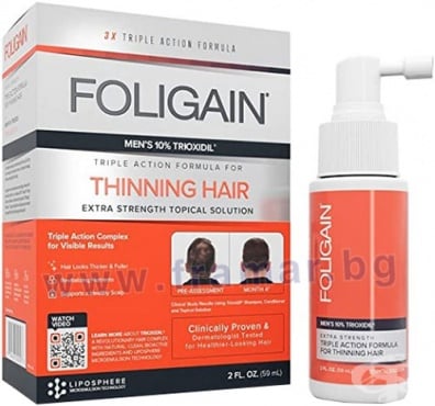 FOLIGAIN Hair Regrowth Treatment For Men е формулиран с най-мощната 10% триоксидилова смес за бързи и видими резултати. Trioxidil е формулиран, за да се насочи към основните причини за изтъняване на косата. За допълнителна плътност, пълнота и младежка жизненост.