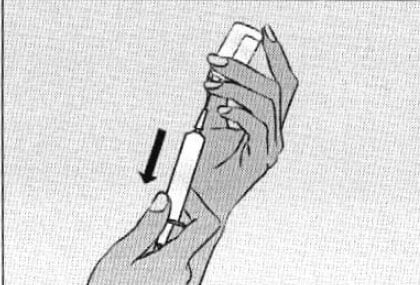 - Изтеглете назад буталото, за да запълните спринцовката с въздух, който трябва да бъде приблизително равен по обем на количеството разтвор, необходимо от флакона.