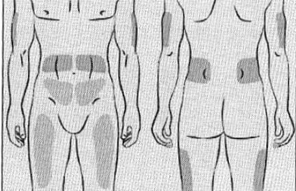 - Кутакуиг може да се приложи в следните области: коремна област, бедро, горната част на ръката и/или областта на горната част на крака/бедрото (Фигура 6).