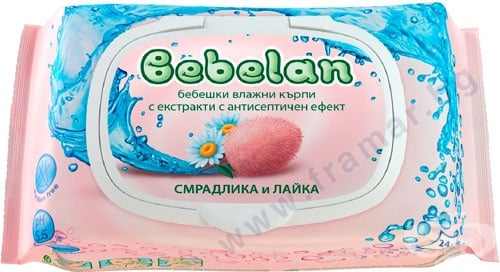 Влажни кърпички BEBELAN са създадени с мисъл за нежната бебешка кожа. Кърпата е от специален нетъкан текстил, който е мек и нежен на допир, но в същото време здрав и неразтеглив. Вадят се лесно една по една. Напоени са с два натурални екстракта - Смрадлика и Лайка, които взаимно допълват своето действие. Обогатени са с Пантенол и Витамин E за максимална грижа към кожата.