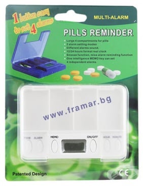Специално създадено смарт устройство, което помага на хората да не пропускат прием на лекарства и добавки. В случай, че сте склонни често да пропускате лекарства и не успявате да спазвате с точност времето за приема им, модерните смарт органайзери, оборудвани с часовник и аларма, са перфектни за вас. Те се настройват лесно и имат различни функции, благодарение на които няма да пропуснете приема на вашите лекарства.