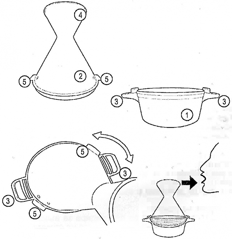 Устройството се състои от система, съдържаща горна част (2) захваната към долната част (1). В долната част се сипва вода с температура около 95°C и се добавя етеричното масло. Образуваната пара се инхалира чрез мундщука.