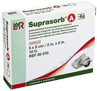 СУПРАСОРБ A+ AG ПРЕВРЪЗКА ОТ КАЛЦИЕВ АЛГИНАТ + СРЕБРО 5 x 5 см * 10