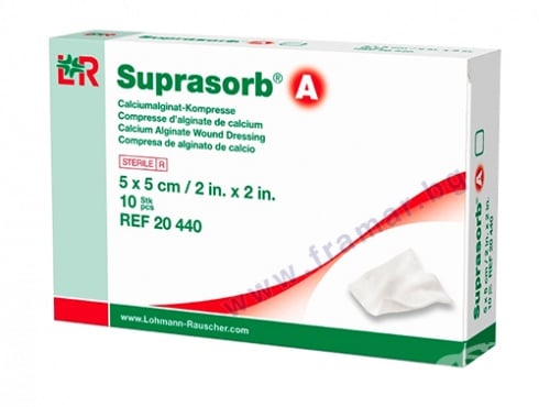 Компресите от калциев алгинат Suprasorb® А са много меки и добре прилягащи в раната влакна от калциев алгинат. Те спомагат за лекуването на рани и са пригодени за лечение на инфектирани рани отделящи ексудативен излив. Влакната калциев алгинат влизат във взаимодействие с ексудата или кръвта от раната и образуват гел (желе), който овлажнява раната. Компресите от калциев алгинат Suprasorb® А са преминали стерилизация и не трябва да се рестерилизират. Превръзката е стерилна, само ако опаковката не е отворена или разкъсана.