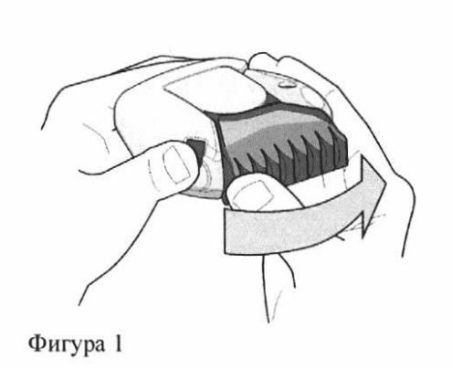 1. За да отворите Вашия инхалатор, придържайте инхалатора с едната ръка в равно хоризонтално положение. Натиснете с палеца си червения бутон (вижте Фигура 1) и въртете светло розовия (за 50/100 микрограма) или розовия (за 50/250 микрограма) капак на мундщука с палеца на другата ръка, докато чуете „щракване“ (вижте Фигура 2). Това ще отвори малък отвор в мундщука и ще достави доза от лекарството в мундщука.