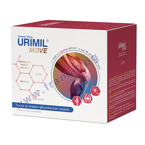 Уримил Муув е специално разработена формула за повече движение. Нейният богат състав подсигурява нормалната функция на тъканите, въвлечени в двигателната активност на всеки човек - кости, стави, сухожилия, мускули и нервна система.