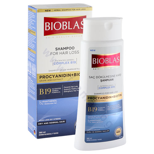 Процианидинът е силен антиоксидант, идващ от гроздовите семки. Защитава косата и скалпа, поддържа здрава и силна коса. Биотинът подхранва и укрепва космените фоликули, които са отслабени поради стрес. Патентован билков комплекс B19 разработен от Bioblas е ефективен срещу косопада и подхранва косата. PH стойността е дерматологично подходяща и съвместима със скалпа.