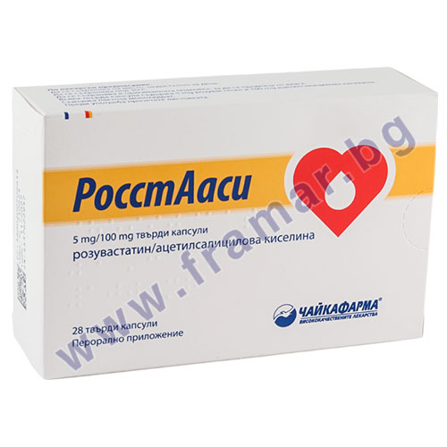 РосстАаси 5 mg/100 mg; Всяка твърда капсула съдържа 5 mg розувастатин (като розувастатин калций) и 100 mg ацетилсалицилова киселина.