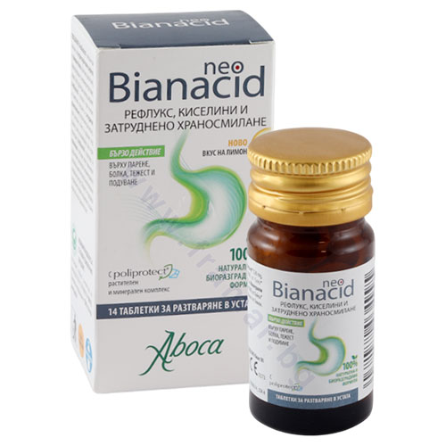 NeoBianacid е показан и при лечение на симптоми, свързани със затруднено храносмилане (безболезнена диспепсия), като киселини, тежест и подуване след хранене, както рецидивиращи, така и при преяждане. NeoBianacid е подходящ за превенция в ситуации, които причиняват раздразнение на лигавицата (например прием на противовъзпалителни средства или периоди на психофизически стрес).