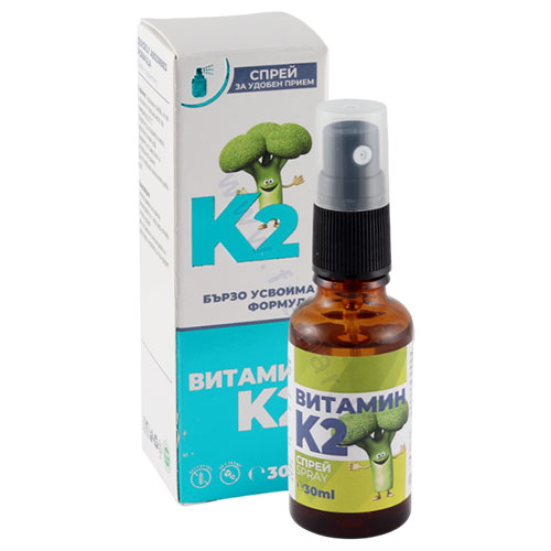 Витамин K2 СПРЕЙ допринася за нормалното състояние на костите и еластичността на меките тъкани.