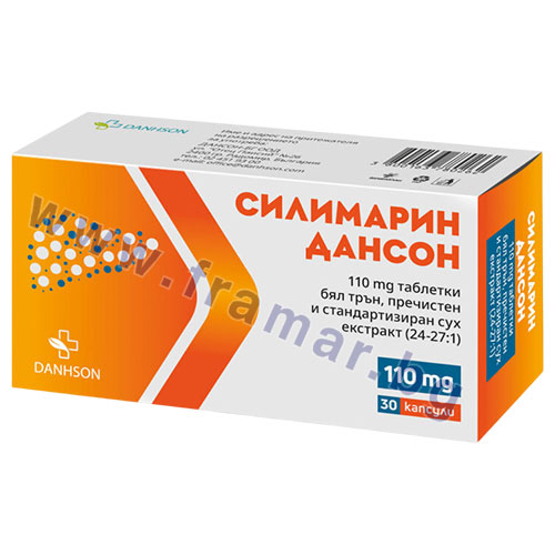 Силимарин ДАНСОН 110 mg е растителен лекарствен продукт, който съдържа активна съставка силимарин, изолиран от плодовете на растението бял трън. Силимарин се използва при токсични увреждания на черния дроб, състояния при прекаран хепатит, хроничен хепатит с невирусен произход, мастна дегенерация на черния дроб, в комплексно лечение на чернодробна цироза, за профилактика на чернодробни увреждания при продължителен прием на лекарства, алкохол, хронична интоксикация (в т.ч. професионална).