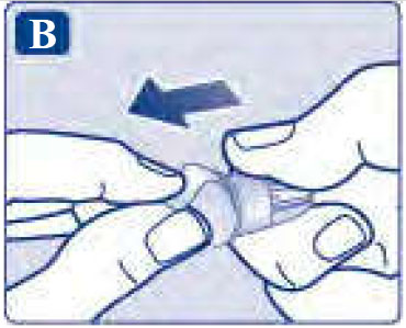 На върха на иглата може да се появи капка от разтвора. Това е нормално, но все пак трябва да проверите изтичането, ако използвате нова писалка за пръв път. Вижте стъпка 2 „Проверете изтичането с всяка нова писалка“. Не поставяйте нова игла на писалката си, докато не сте готови да инжектирате. |