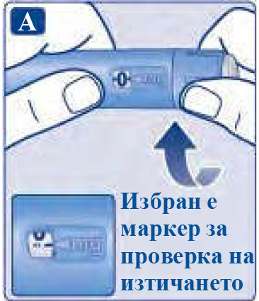 Какво да правите със запушена игла Никога не докосвайте брояча на дозата, докато инжектирате. Това може да прекъсне инжектирането. |