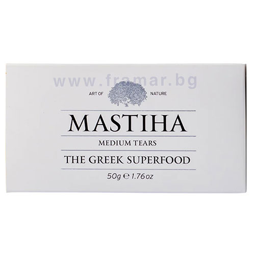 Mastiha Medium Tears са гранули, произведени от смолата на мастиковото дърво (Pistacia Lentiscus var. Chia), добита от остров Хиос, Гърция. Тези капки са сред най-висококачествените смоли от това дърво, отличаващи се с уникален аромат и вкус.