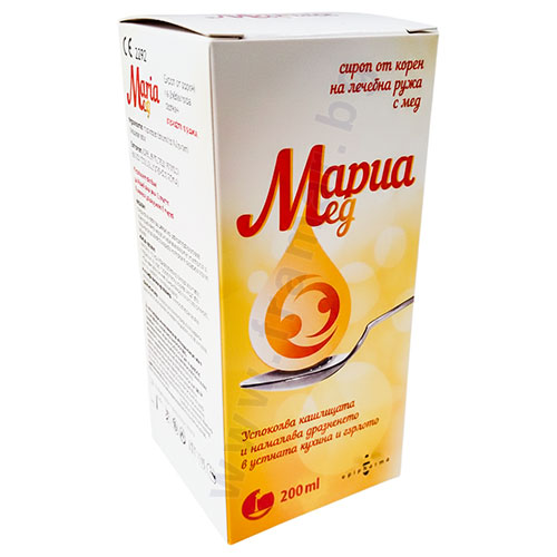 МариаМед сироп успокоява сухата кашлица и намалява дразненето в устната кухина и гърлото. МариаМед сироп съдържа мацерат от корен на лечебна ружа, клей, който покрива лигавицата на устната кухина и гърлото и облекчава сухотата.