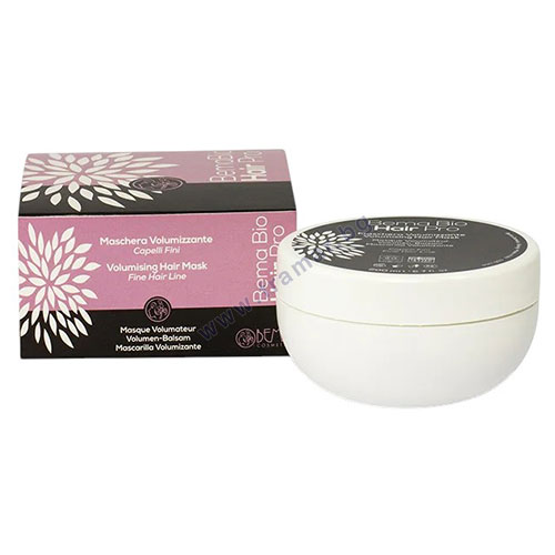 Маската за обем на косата BemaBio е предназначена за фина и чуплива коса, като я укрепва от корените до върховете, придавайки й обем и здравина. Формулата й съдържа натурални съставки като листа от баобаб, масла от маракуя, асаи, сладък бадем, оризови трици, макадамия и маслина, които хидратират интензивно, правят косата мека, копринена и лесна за разресване. Екстрактите от невен и лавандула защитават косата, усилват обема и я правят по-здрава и блестяща на вид.