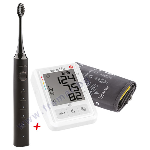 КОМПЛЕКТ ЕЛЕКТРОНЕН АПАРАТ ЗА ИЗМЕРВАНЕ НА КРЪВНО НАЛЯГАНЕ MICROLIFE BP B3 AFIB + ЗВУКОВА ЕЛЕКТРИЧЕСКА ЧЕТКА ЗА ЗЪБИ MICROLIFE CLEAN S5 ЧЕРНА