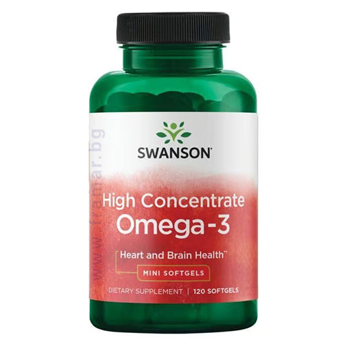 Повечето Омега-3 капсули на пазара са големи и трудни за преглъщане, а миризмата на риба може да направи приема им неприятен. Затова Swanson създават Омега-3 с висока концентрация в малки, удобни за преглъщане капсули, без мирис и вкус на риба. Всяка доза осигурява два пъти повече EPA и DHA в сравнение със стандартните продукти с рибено масло. Омега-3 подпомагат сърдечносъдовата система, мозъчната дейност, ставите и кожата, както и поддържат емоционалното равновесие.