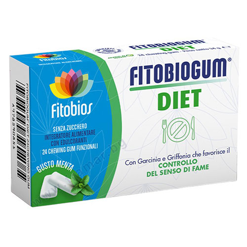 Fitobiogum® Diet е натурална, безкалорична дъвка, предназначена да подпомага контрола върху апетита и да улеснява спазването на здравословен начин на хранене. Може да се комбинира с физически упражнения, нискокалорична, нисковъглехидратна или балансирана диета. Формулата й позволява бързо усвояване на активните съставки през устната лигавица благодарение на удобната форма на дъвка.