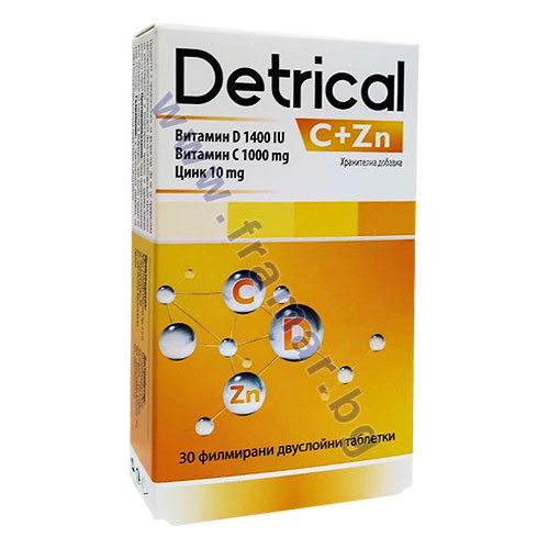 Detrical C + Zn съдържа високи дози витамин D, витамин С и цинк необходими за дневен прием при повишени нужди.