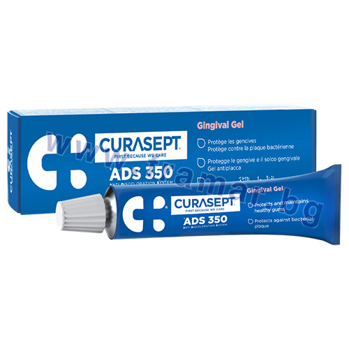 Curasept ADS 350 – гингивален гел за венци, който не оцветява зъбната кост и металокерамиката. Поддържа венците здрави и ги предпазва от натрупване на бактериална плака. Системата A.D.S.® свежда до минимум оцветяването и промяната на вкуса.