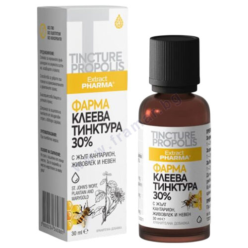 ФАРМА КЛЕЕВА ТИНКТУРА 30% С ЖЪЛТ КАНТАРИОН, ЖИВОВЛЕК И НЕВЕН 30 мл ЕКСТРАКТФАРМА