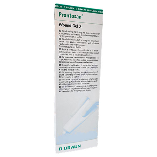 Почти всички кожни рани често се покриват със струпеи, некроза и/или биофилм. Тези покрития се премахват трудно и водят до забавено заздравяване на раната. Затова правилното почистване на раната е от основно значение. Използването на гел за рани Prontosan® X също така улеснява по-нататъшното почистване и обеззаразяване на дъното на раната между смените на превръзките. Острите рани също изискват правилно почистване, тъй като те винаги са замърсени с нечистотии и микроорганизми. Тези замърсители могат да възпрепятстват нормалния процес на заздравяване на раната и да доведат до усложнения, например инфекции. При остри рани, които изискват зашиване, гелът за рани Prontosan® X трябва да се прилага след хирургичната интервенция и зашиването. Благодарение на уникалната комбинация от съставки (т.е. антимикробно вещество полихексанид и повърхностноактивното вещество бетаин), гелът за рани Prontosan® X е идеален за предотвратяване на образуването на биофилм. Резултатите от тестове го подкрепят твърдението, че гелът Prontosan® X е ефективна бариера за намаляване на микробното проникване през превръзката. За оптимални резултати иригационният разтвор за рани Prontosan® (вж. отделната информация за продукта) трябва да се използва за почистване на раната и зоната около раната преди третирането с гел за рани Prontosan® Х. Гелът за рани Prontosan® Х съдържа хидроколоид, който спомага за създаването на оптимална влажност на среда за заздравяване на раната, като по този начин намалява вероятността за образуване на белези.