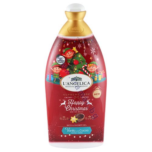 Душ гелът L'Angelica какао и ванилия придава на кожата ви интензивен аромат, благодарение на сладките нотки на какаото и нежните нотки на ванилия. Насладете се на коледната атмосфера и се оставете да бъдете обгърнати от меката и ароматна пяна.