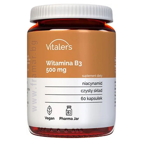 Витамин B3 (никотинамид) на Vitaler’s съдържа доза от 500 mg витамин В3 във всяка лесна за прием капсула. Никотинамидът е форма на витамин B3, която не предизвиква характерното за ниацина „зачервяване“ на кожата (т.нар. „flush“ ефект).
