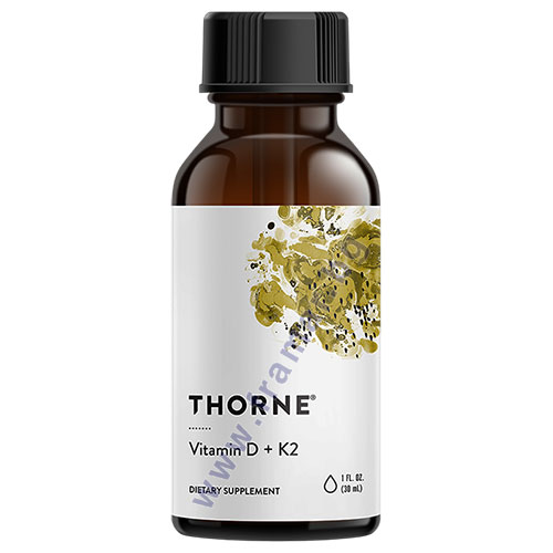Thorne Vitamin D+ K2 е висококачествена хранителна добавка, която съдейства за нормалното състояние на костите.