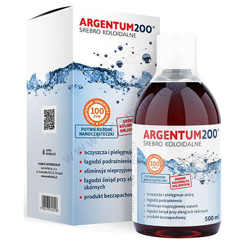 Colloidal Silver Argentum200® е тоник с високо съдържание (100 ppm) на колоидно сребро, приготвен на базата на деминерализирана вода. Числото ppm (части на милион) показва концентрацията на сребърни наночастици. Продуктът е предназначен само за външна употреба и служи за почистване, освежаване и грижа за кожата. Помага за успокояване на раздразненията и е подходящ за кожа, склонна към несъвършенства. Чистотата на среброто в продукта надвишава 99,9%.
