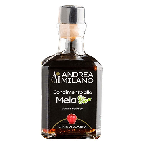 Ябълковият дресинг на Andrea Milano е висококачествен ябълков оцет, създаден от внимателно подбрани био ябълки. Произведен чрез естествена ферментация на органичен ябълков сок, той не съдържа никакви изкуствени добавки или консерванти, което гарантира неговата чистота и автентичност.
