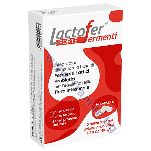 Lactofer Fermenti Forte е хранителна добавка, съчетаваща висококонцентрирани пробиотични щамове, подбрани заради своята стабилност и способност да се установяват в червата и да поддържат естествения баланс на микробиотата. Всяка капсула осигурява 10 милиарда живи млечни ферменти, подбрани заради своите основни характеристики: