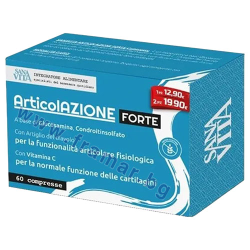 SanaVita Articolazione Forte е хранителна добавка, съдържаща глюкозамин, хондроитин, екстракт от дяволски нокът и витамин C. Подкрепя нормалното състояние на ставите и опорно-двигателния апарат. Формулата е разработена с цел да осигурява ежедневна подкрепа за нормалната физиологична функция на ставите и за доброто състояние на хрущялната тъкан.
